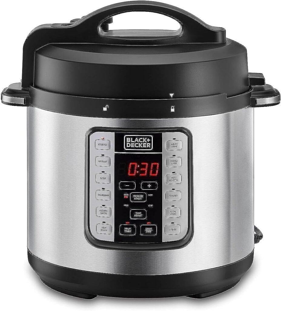 بلاك اند ديكر وعاء بخار ذكي من ، 1000 واط، 7 في 1، 6.0 لتر، طنجرة ضغط كهربائية ذكية قابلة للبرمجة، أسود/فضي – PCP1000-B5 ضمان دولي